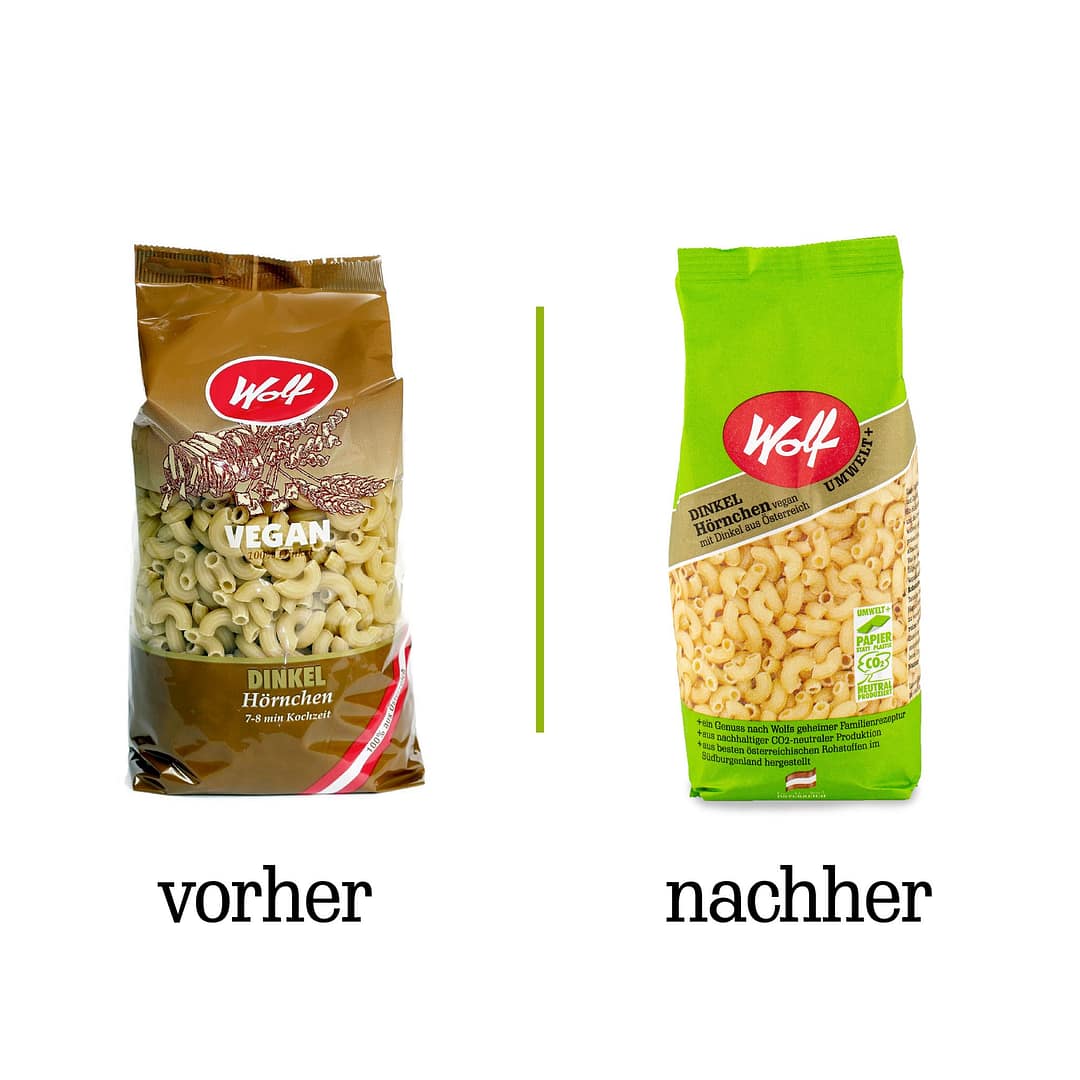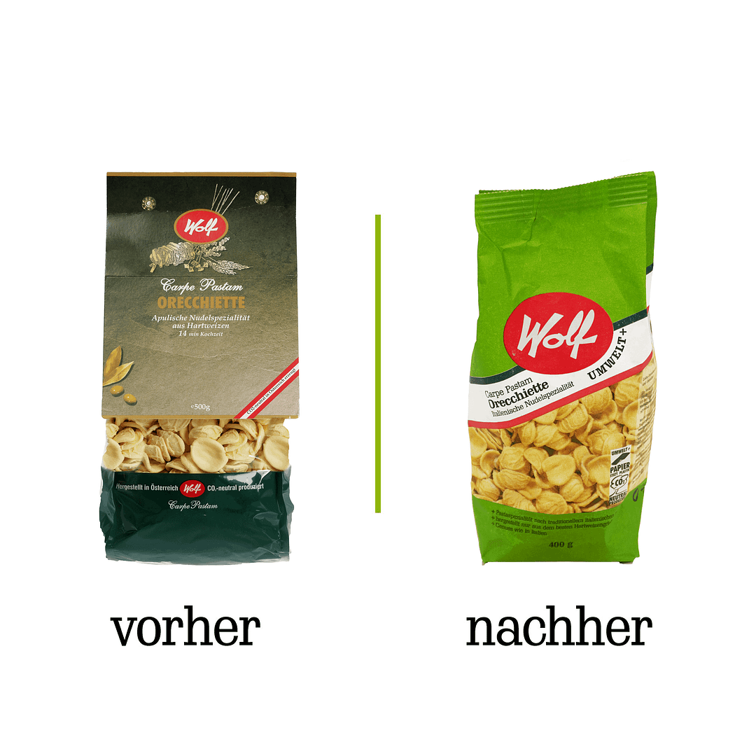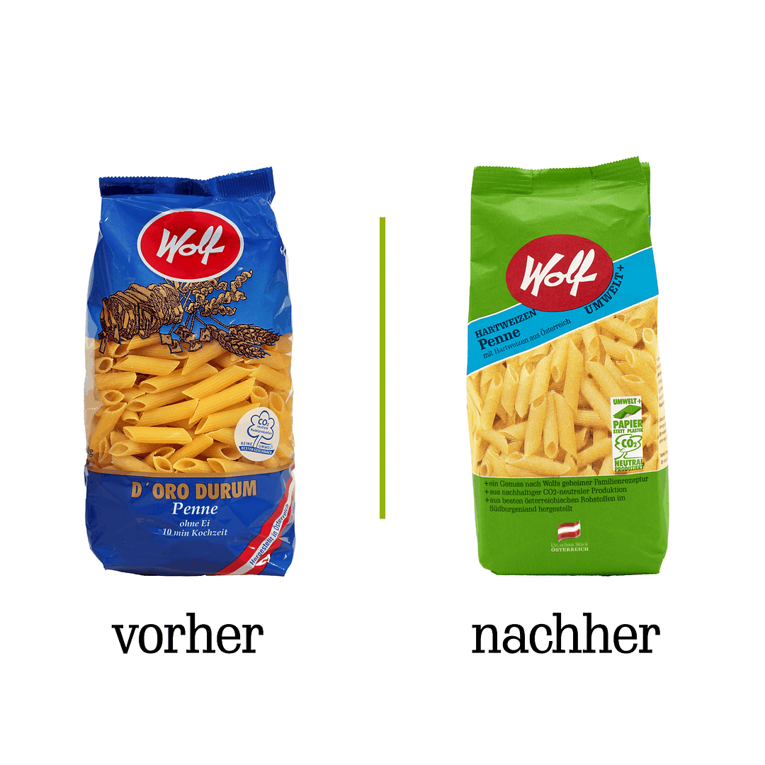 Wolf war im Jahr 2018 der weltweit erste Pasta-Hersteller, der eine 100-Prozent-Papierverpackung auf den Markt gebracht hat.